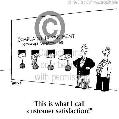 Cartoons © Ted Goff customer service cartoon 2038: Row of heads sticking out