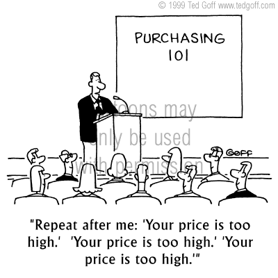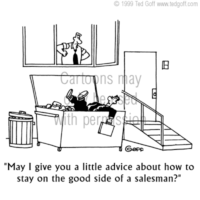 Cartoons © Ted Goff sales cartoon 2719: Purchasing 101 class:
